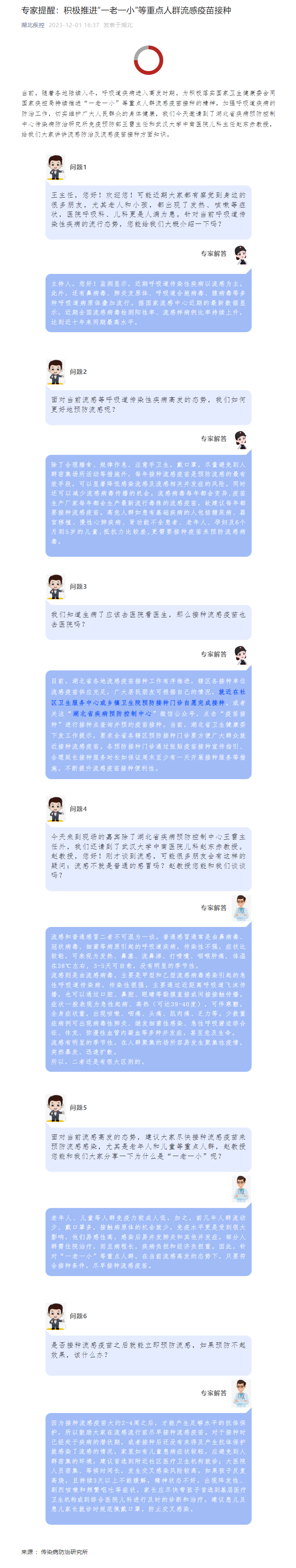 專家提醒:積極推進“一老一小”等重點人群流感疫苗接種