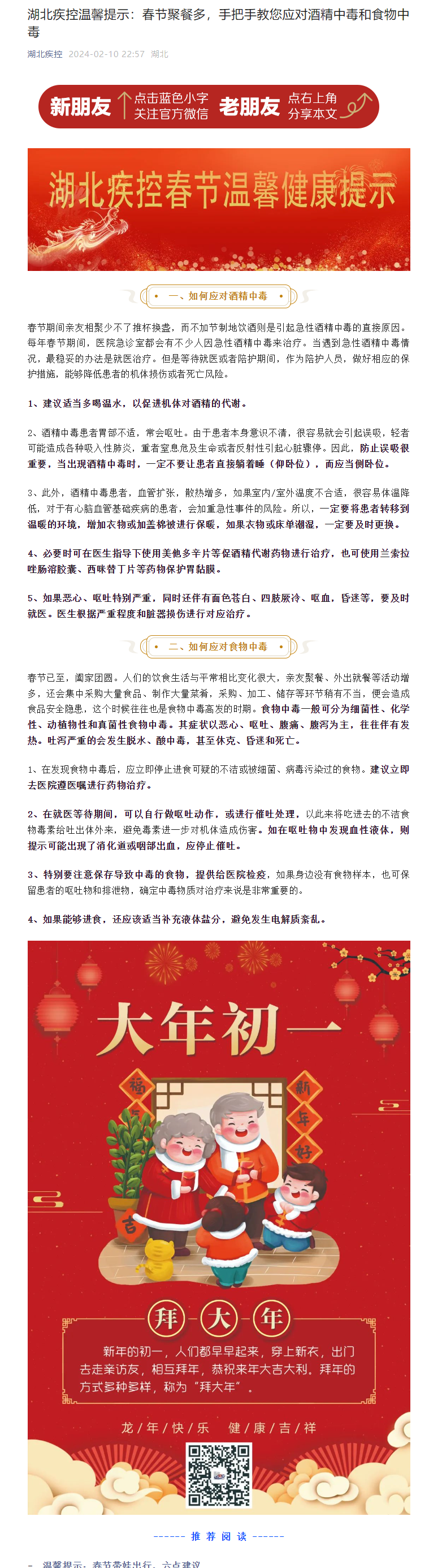 湖北疾控溫馨提示:春節(jié)聚餐多,手把手教您應(yīng)對(duì)酒精中毒和食物中毒