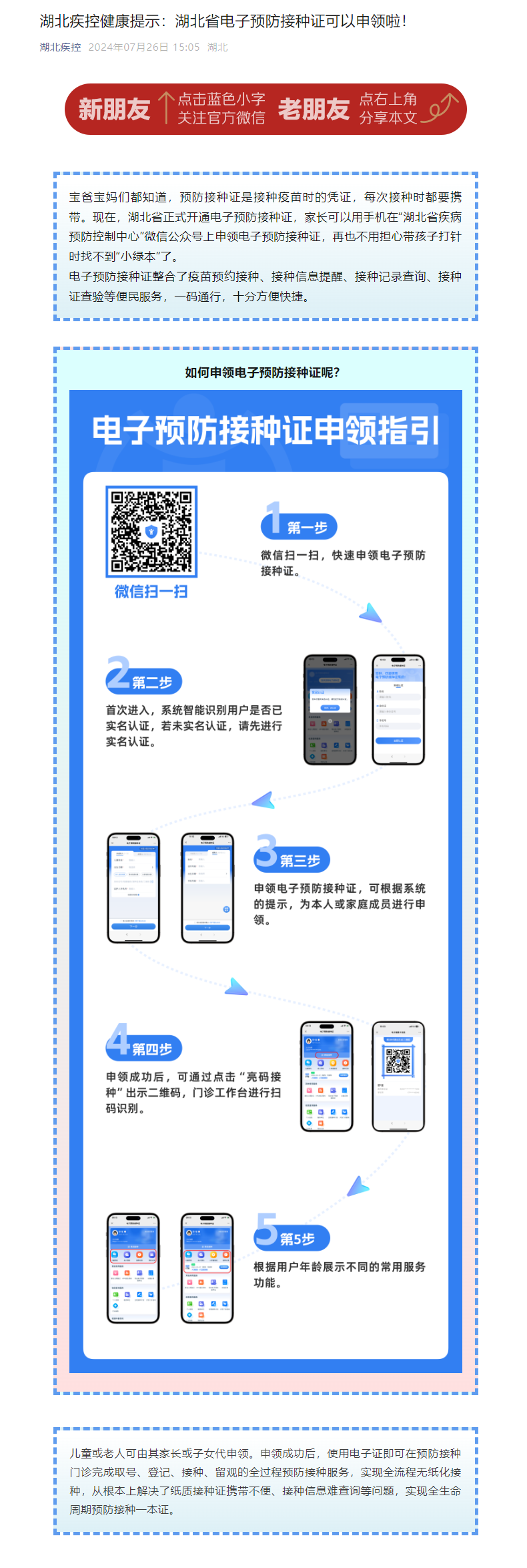 湖北疾控健康提示:湖北省電子預(yù)防接種證可以申領(lǐng)啦!