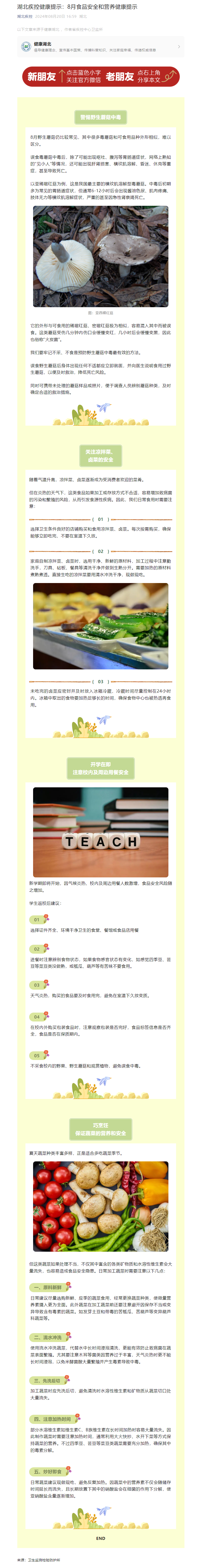 湖北疾控健康提示:8月食品安全和營養健康提示