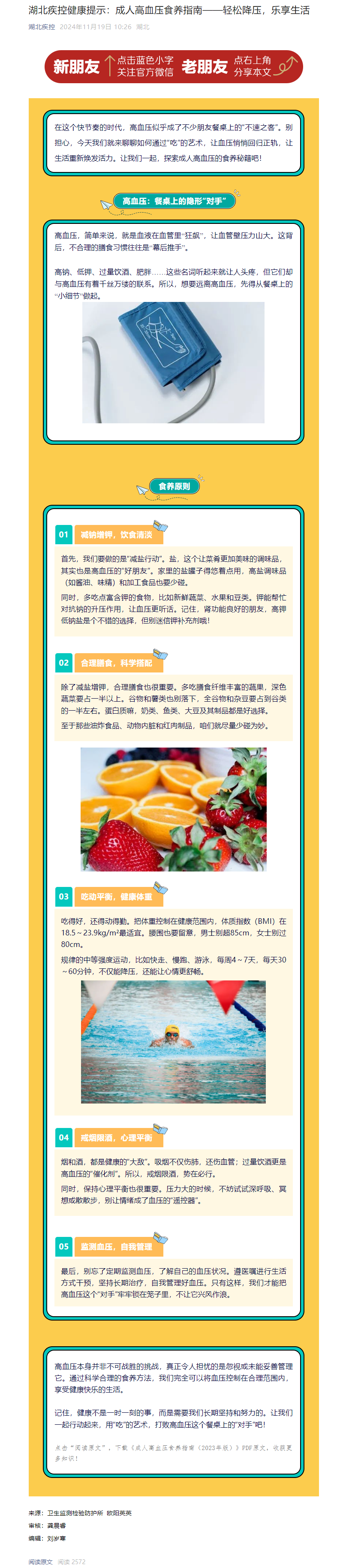湖北疾控健康提示:成人高血壓食養指南——輕松降壓,樂享生活