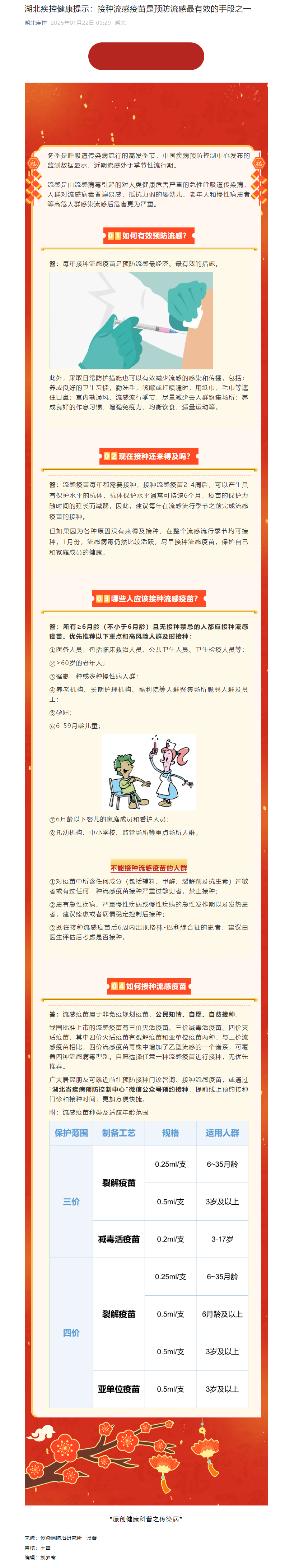 湖北疾控健康提示:接種流感疫苗是預防流感最有效的手段之一
