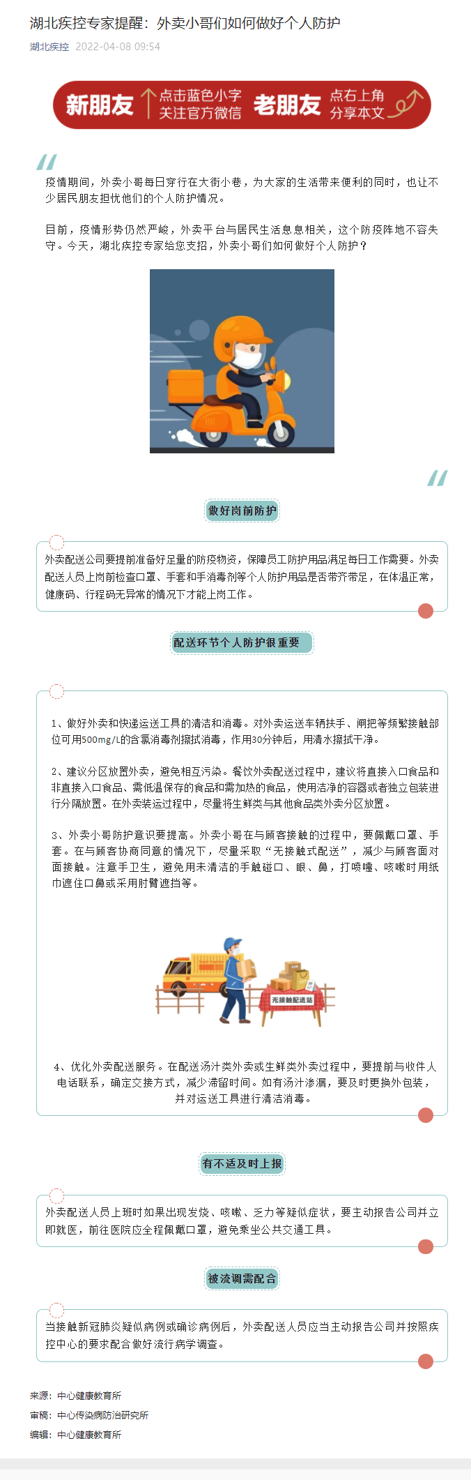 湖北疾控專家提醒:外賣小哥們如何做好個人防護