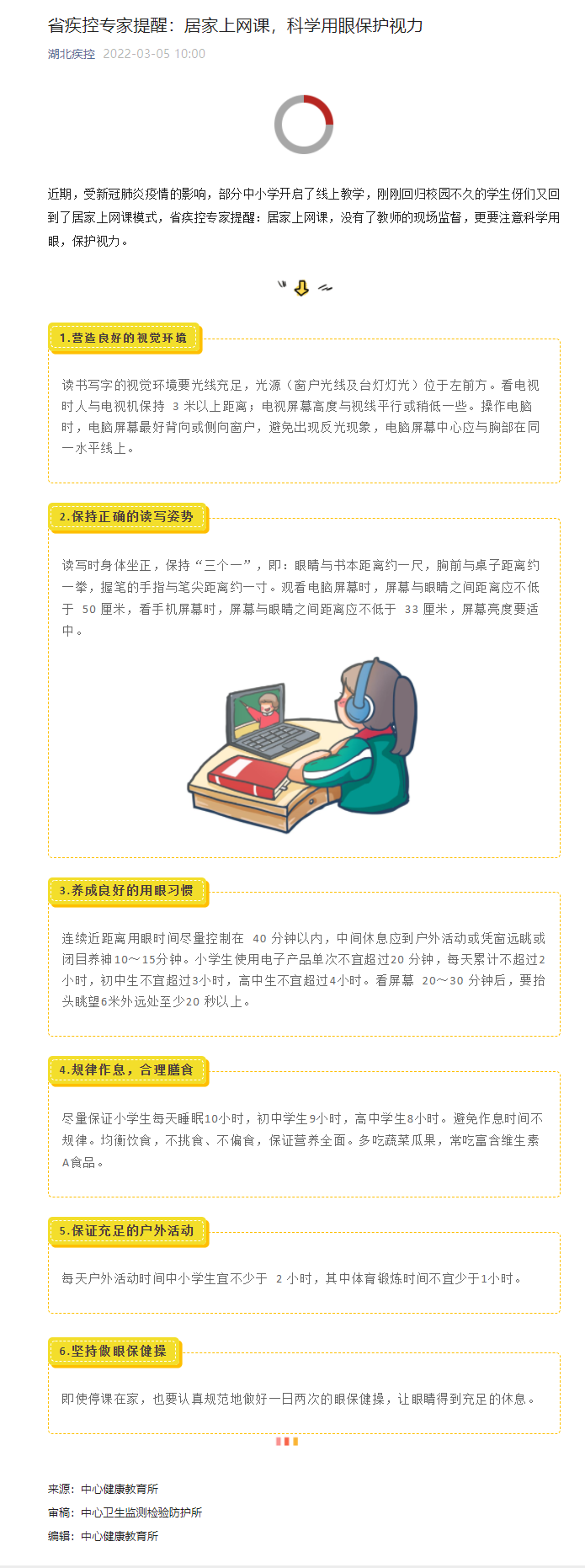 省疾控專家提醒:居家上網課,科學用眼保護視力