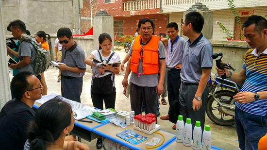 7月12日,第二批省疾控中心防疫專家到達(dá)黃石市陽新縣,他們放下行李,立刻投入緊張的救災(zāi)防病工作。哪里有災(zāi)情,哪里就有衛(wèi)生防疫。為了到達(dá)災(zāi)情最重的栗林村,他們克服道路中斷的困難,靠機(jī)船繞湖心出行,到達(dá)栗林村看望受災(zāi)居民,對(duì)生活用水檢測消毒,并為他們講解救災(zāi)防病知識(shí),分放防蚊蟲藥物,受到災(zāi)區(qū)群眾的歡迎。