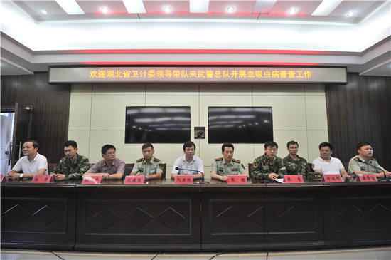 武警湖北總隊(duì)副司令員張銘同志、衛(wèi)生處處長(zhǎng)聶善化同志,省血防辦副主任洪志華同志、省疾控中心副主任黃希寶同志、省血防所所長(zhǎng)蔡順祥同志及省血防所專家參加了此次普查普治工作。