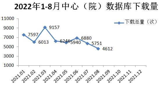 7月,數(shù)據(jù)庫總下載量5751次,比去年同期下降21.39%;8月,數(shù)據(jù)庫總下載量4612次,同比下降26.41%。