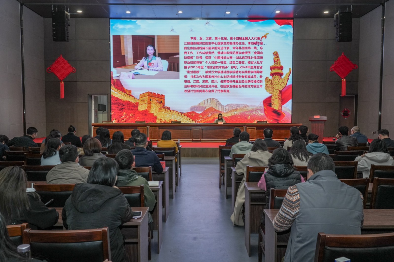 李霞是第十三屆、第十四屆全國(guó)人大代表,江陵縣疾病預(yù)防控制中心國(guó)家血防基地辦主任。李霞從全國(guó)兩會(huì)概況、全國(guó)兩會(huì)精神、湖北代表團(tuán)活動(dòng)情況、個(gè)人履職情況四個(gè)方面作了宣講報(bào)告。全國(guó)兩會(huì)于2025年3月5日至11日在北京舉行,近3000名全國(guó)人大代表出席會(huì)議,在7天的會(huì)期里,圓滿完成了7項(xiàng)議程。大會(huì)期間,習(xí)近平總書(shū)記先后參加了江蘇代表團(tuán)審議,看望了民盟、民進(jìn)、教育界委員,并參加聯(lián)組會(huì),出席了解放軍和武警部隊(duì)代表團(tuán)全體會(huì)議,發(fā)表了一系列重要講話,深刻闡釋了事關(guān)我國(guó)發(fā)展戰(zhàn)略和全局的一系列重大問(wèn)題,為推動(dòng)中國(guó)式現(xiàn)代化邁出新的堅(jiān)實(shí)步伐,指明了前進(jìn)方向、提供了根本遵循。李霞代表兩會(huì)期間認(rèn)真履職,積極建言獻(xiàn)策,提交了《關(guān)于積極推進(jìn)動(dòng)態(tài)增加國(guó)家免疫規(guī)劃疫苗種類(lèi)的建議》等8份建議,為湖北和荊州加強(qiáng)支點(diǎn)建設(shè)、實(shí)現(xiàn)高質(zhì)量發(fā)展提出了寶貴建議。深入學(xué)習(xí)貫徹全國(guó)兩會(huì)精神和習(xí)近平總書(shū)記重要講話精神,是當(dāng)前和今后一個(gè)時(shí)期的重要政治任務(wù)。
