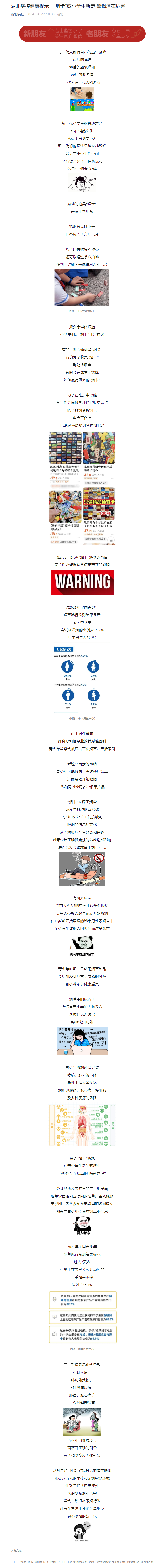 湖北疾控健康提示:“煙卡”成小學生新寵 警惕潛在危害