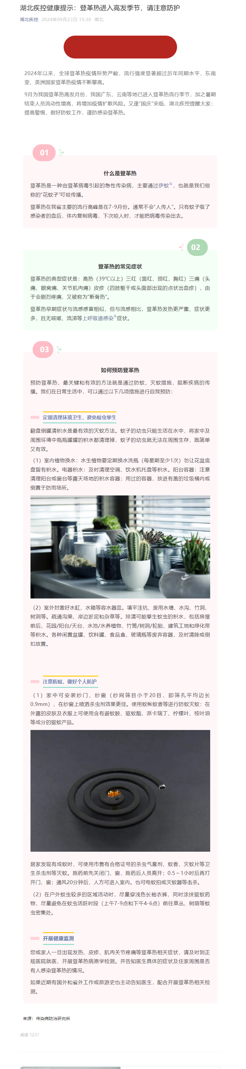 湖北疾控健康提示:登革熱進(jìn)入高發(fā)季節(jié),請(qǐng)注意防護(hù)